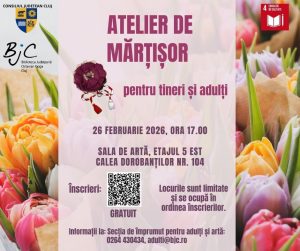 Organizăm un atelier de creație manuală în care participanții vor putea să confecționeze mărțișoare folosind tehnici simple și materiale accesibile, asigurate de noi. Acesta va avea loc în 26 februarie 2026, de la ora 17:00, în Sala de artă a bibliotecii, sediul central, etajul 5 est. Participarea este gratuită, pe baza Permisului de intrare la …
