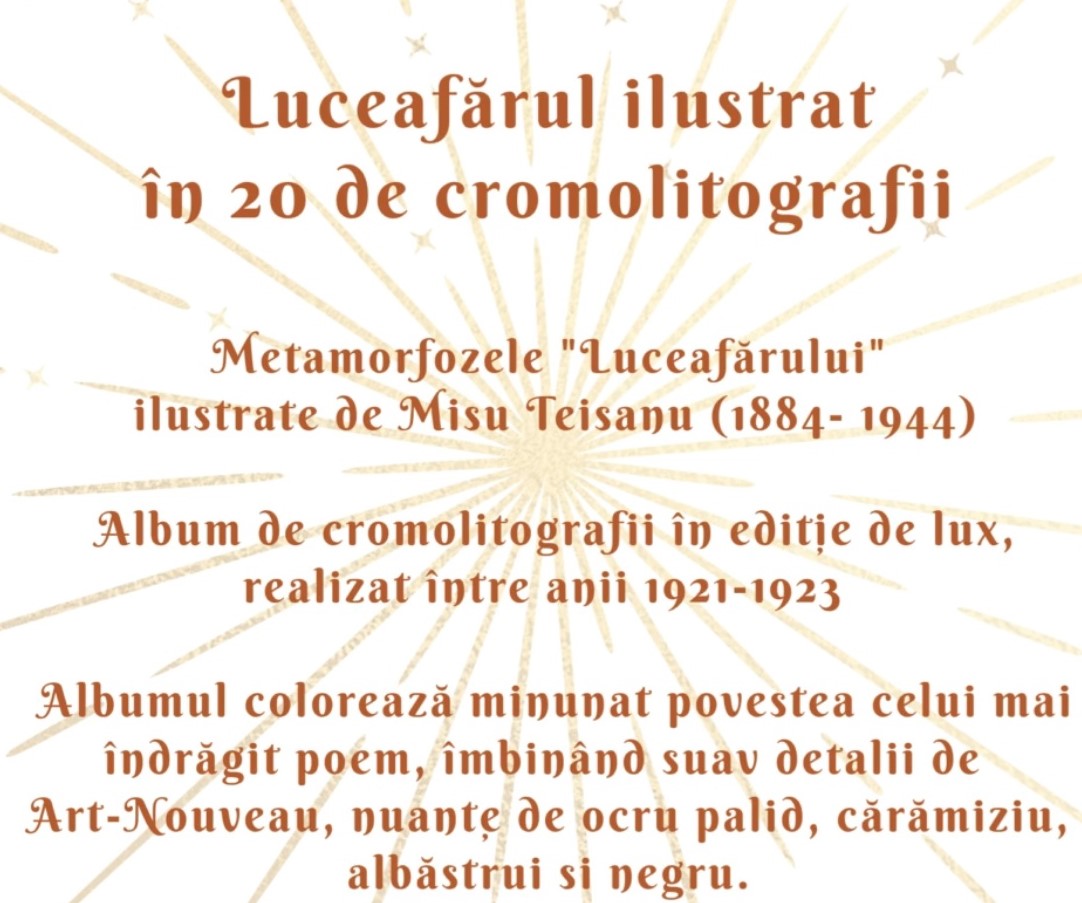 Metamorfozele „Luceafărului” ilustrate de Misu Teișanu (1884- 1944) – Album de cromolitografii în ediție de lux, realizat între anii 1921-1923 Albumul colorează minunat povestea celui mai îndrăgit poem, îmbinând suav …
