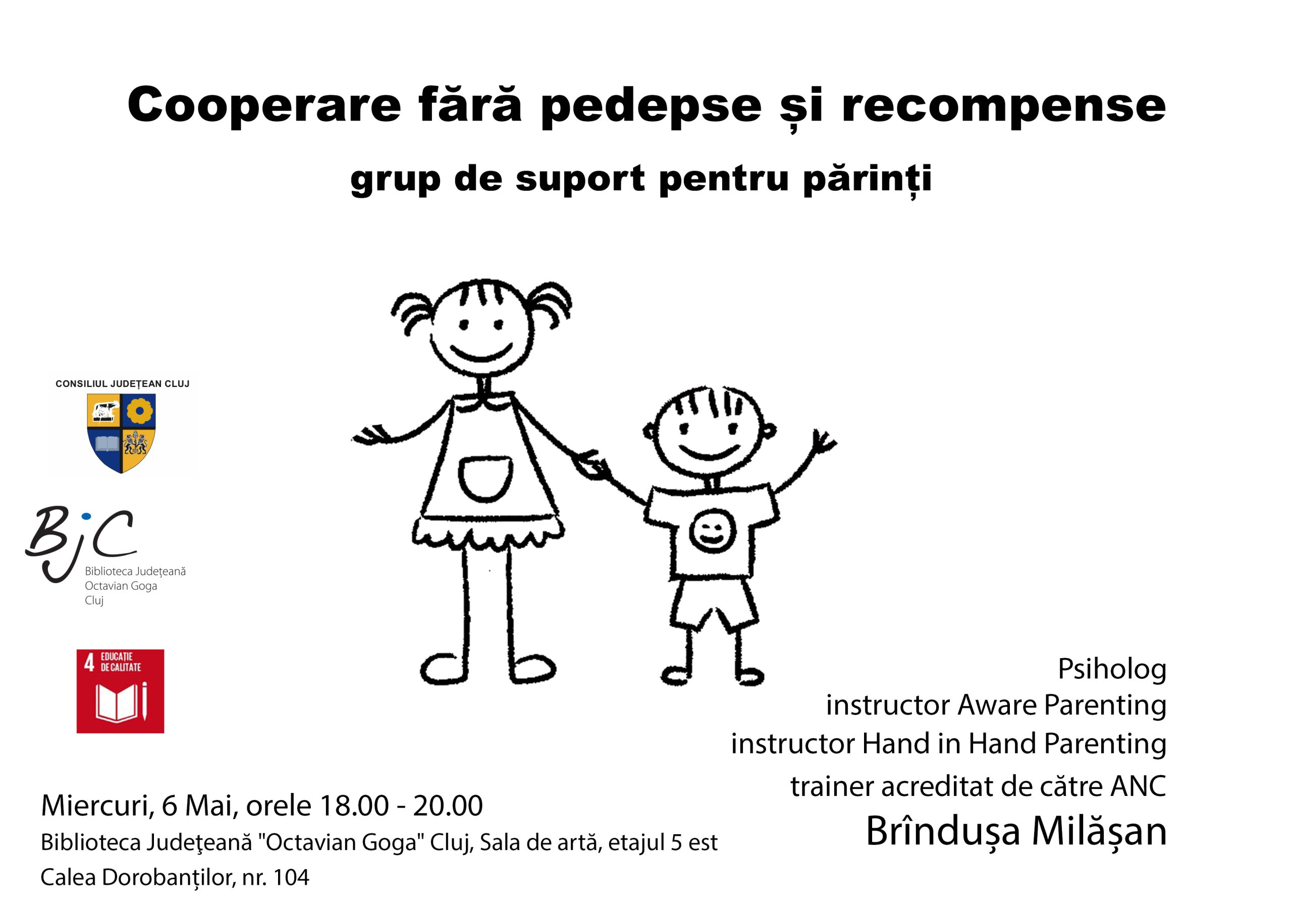 Grup de suport pentru părinți. Tema întâlnirii: Cooperare fără pedepse și recompense