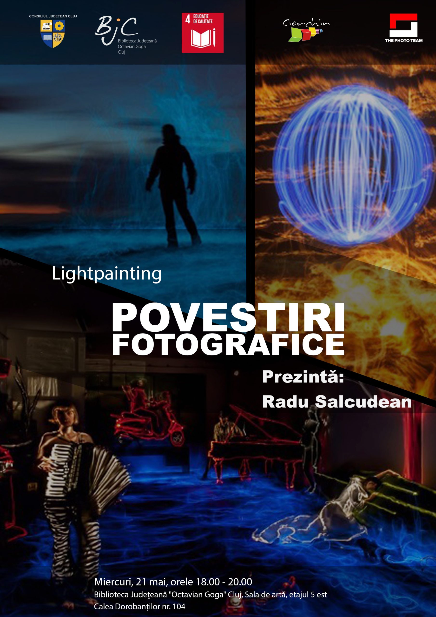 Vă invităm să participați la a zecea întâlnire din seria „Povestiri fotografice”, întâlnire ce va avea loc în data de 21 mai 2025, de la ora 18:00, în Sala de artă a bibliotecii. Alături de Radu Sălcudean, vom descoperi povești scrise cu lumină, unde fotografia devine artă pură prin tehnica hipnotizantă a lightpainting-ului.