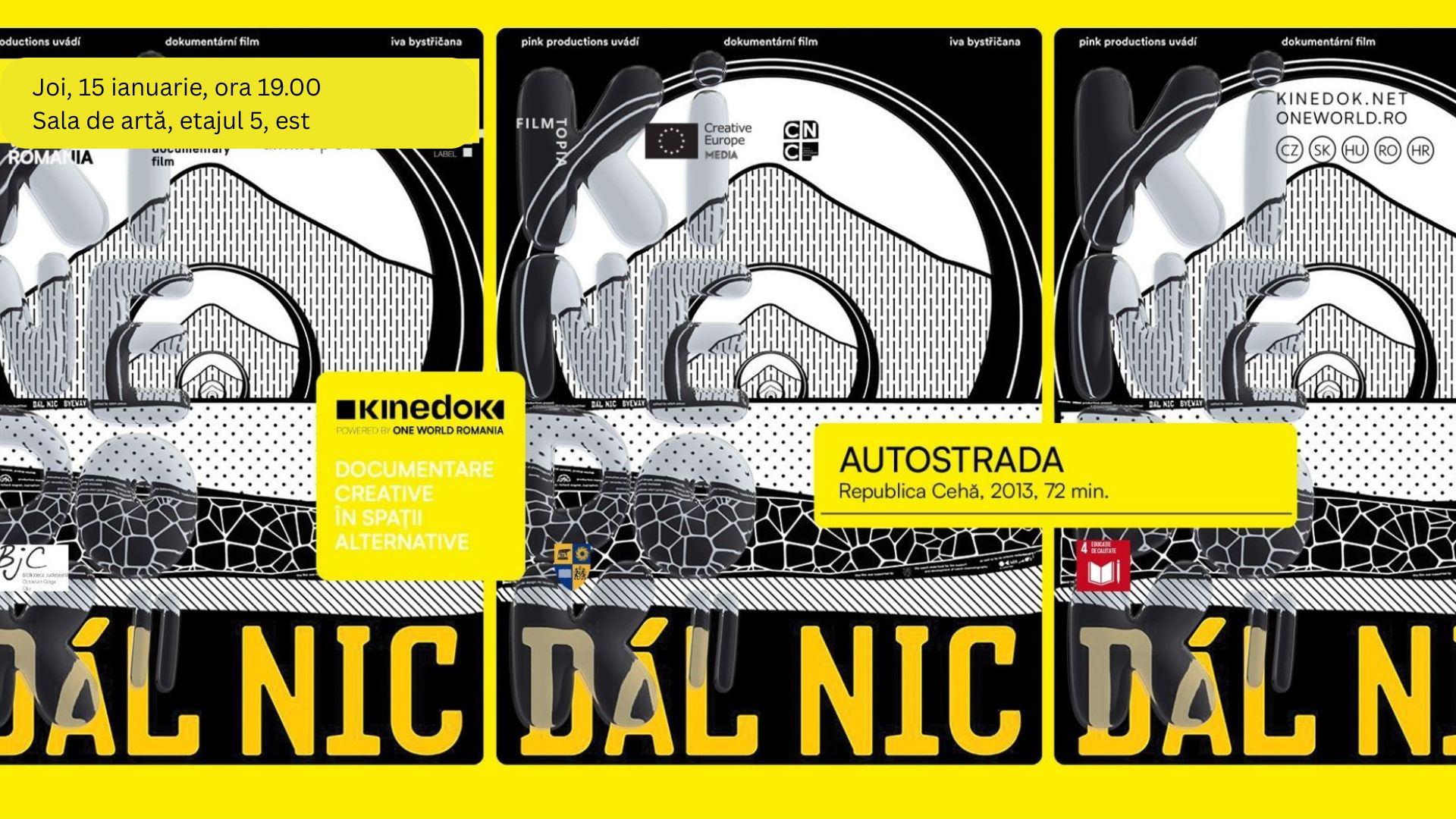 Joi, 15 ianuarie 2026, de la ora 19.00, vă așteptăm la Sala de artă cu un nou film documentar KineDok: Autostrada/Byeway (Republica Cehă, 2013, 72 min.) Regia: Ivo Bystřičan Imagine: …